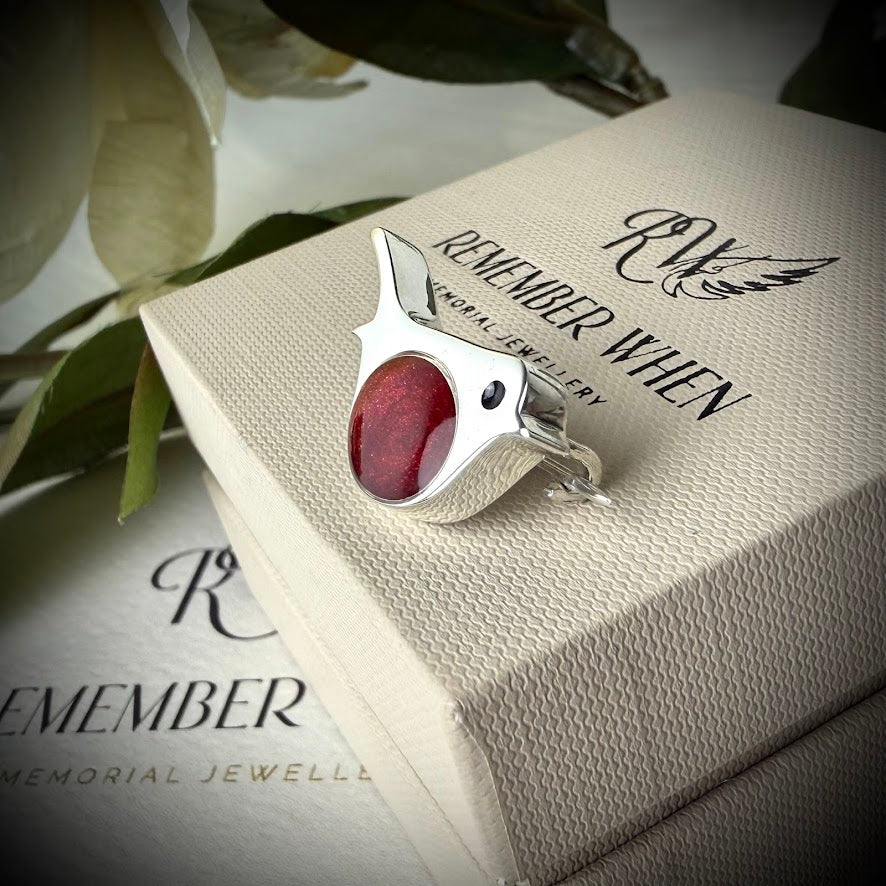 Crafted with .925 Sterling Silver, this elegant Classic Robin Brooch serves as a beautiful memorial for your cherished loved one's ashes or hair. Available in a variety of colours.