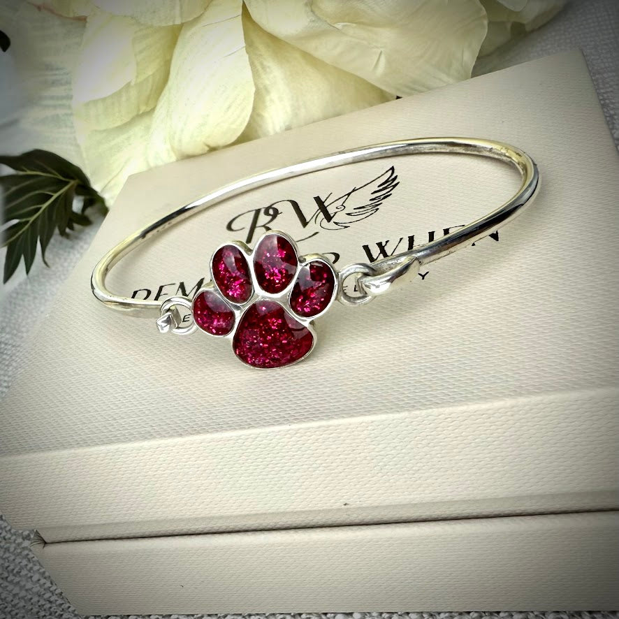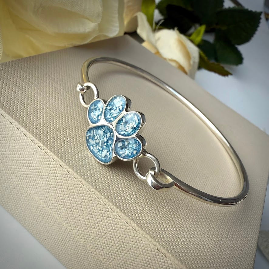 This exquisite My Fur Baby bracelet is crafted from .925 Sterling silver and is Hallmarked at the assay office. It comes in a variety of stunning colors to encapsulate the ashes, hair, or fur of your loved ones. Features a hook connection.