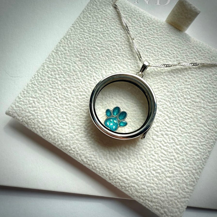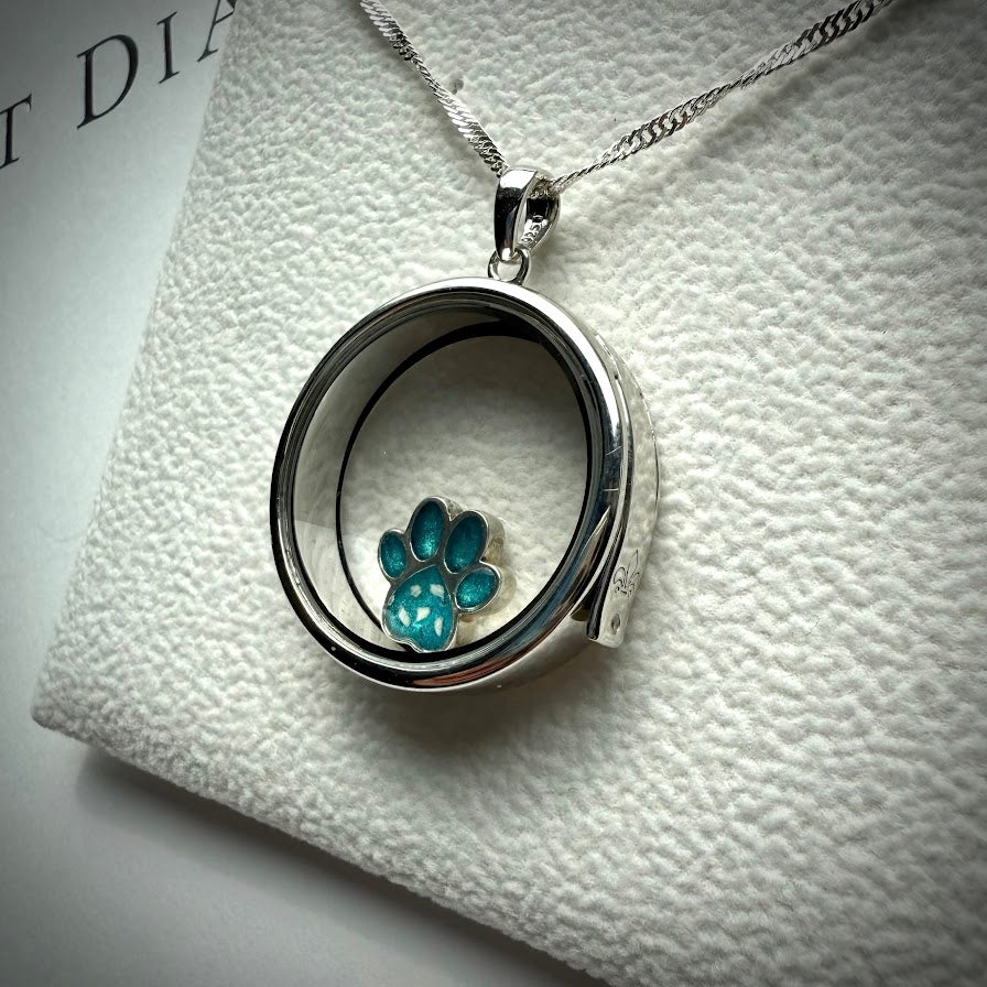 Round glass and .925 Silver locket & Paw Charm