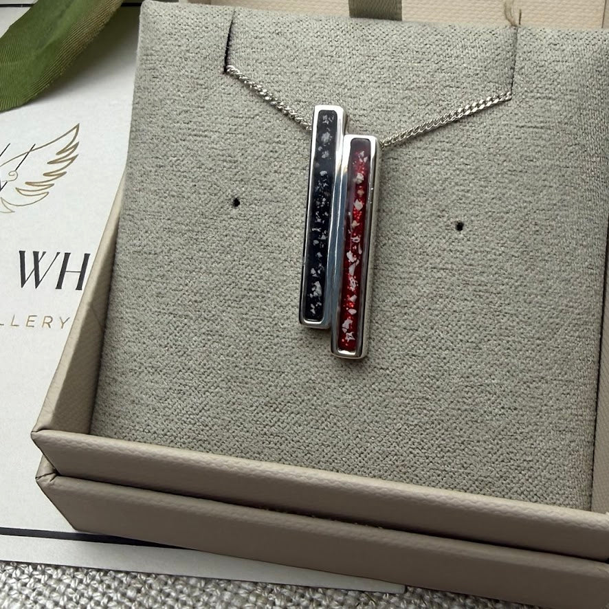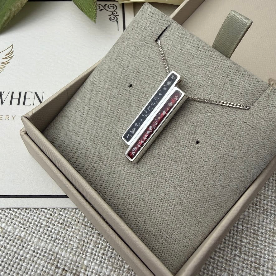 The Eternal Embrace Pendant is made of .925 Sterling Silver and is accompanied by a selection of 16, 18, or 20-inch chains in plain or twist styles. This pendant can hold ashes, hair, fur, and other cherished keepsakes, including sand, in a range of colours.