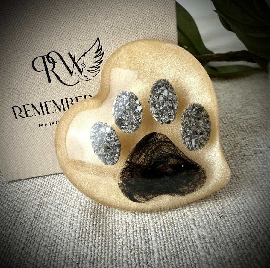 Crafted in a wide range of colors, the Wavy Heart Pebble measures 6.5 x 6.5 x 1.5 cm. This beautiful pebble allows you to encase sentimental keepsakes such as ashes, hair, fur, or sand, making it a truly unique and meaningful piece.